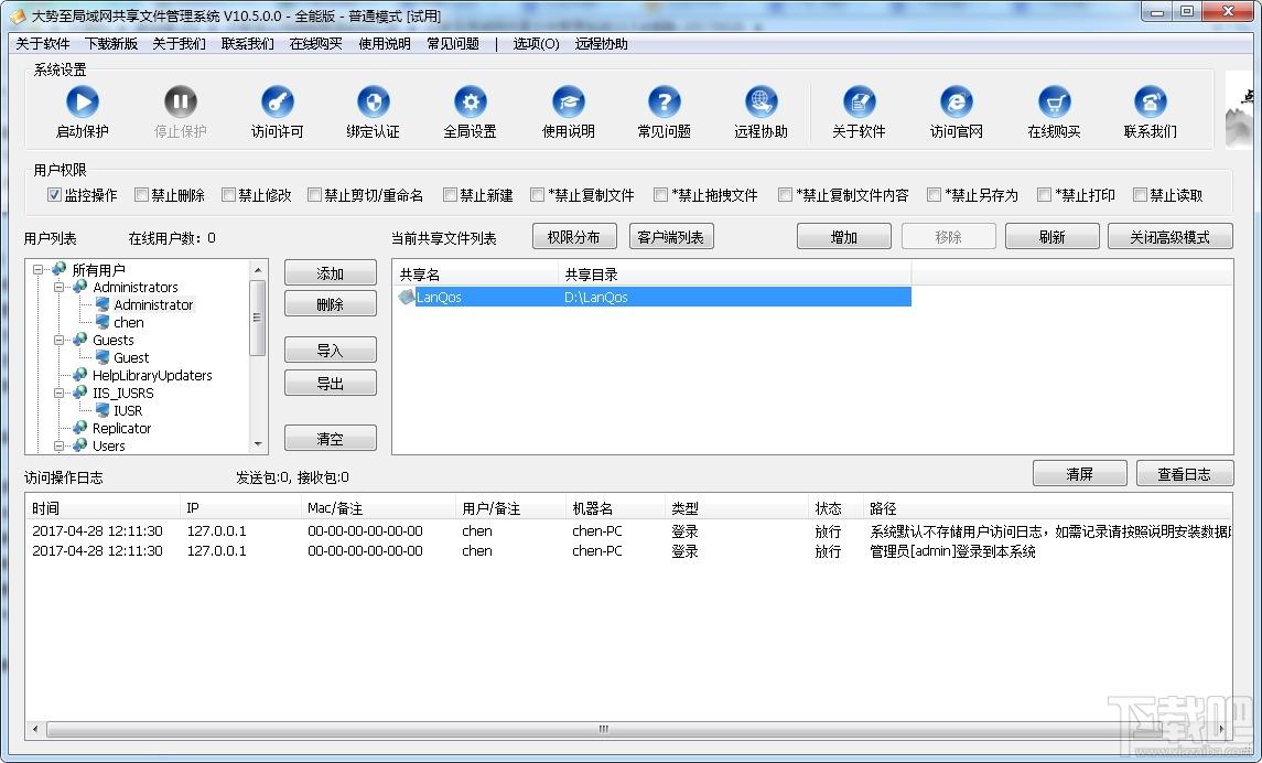 大势至局域网共享权限设置软件是国内首款专业的服务器共享文件权限设置软件、共享文件访问日志监控软件,可以有效监控服务器共享文件的打开、读取、修改、剪切、删除和重命名等操作,还可以防止重要共享文件被删除等,保护单位无形资产和商业机密。